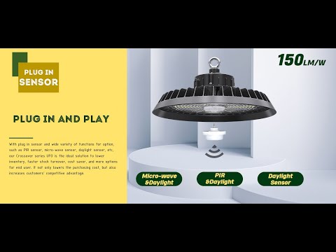 UFO Highbay LED 150W 4000K 120° – Justerbar effekt | IP65 | Plug-in sensor